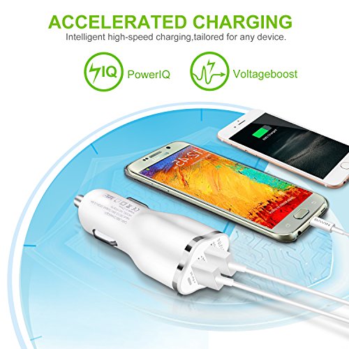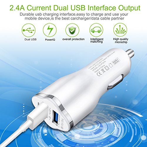 - UNIVERSAL COMPATIBILITY:The car charger has two USB interfaces for IOS and Android Allow simultaneous work, charging more efficient by selecting the charging interface according to your devices. Work fine with iPhone 7 / 6s / 6 / 5 / SE / Plus, Samsung Galaxy S8 / S7 / S6 / Edge / Plus, Note, LG, Nexus, HTC, Moto and more smart phones, tablets and so forth. Allow you to charge two devices while using on the road.