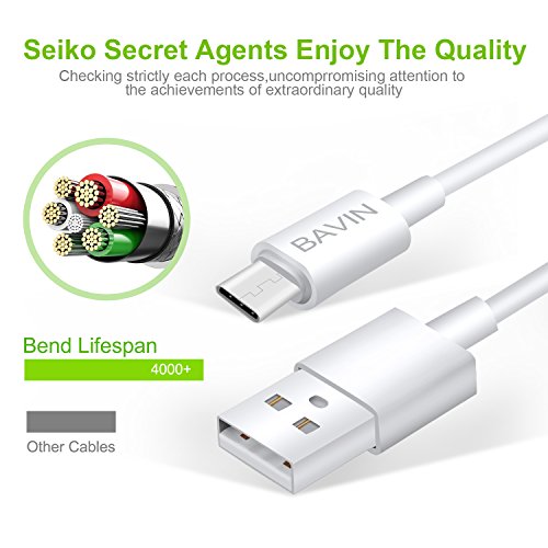 USB Type C Car Charger BAVIN 2.4/12W Dual Port USB Car Charger with 3Ft Type C USB Cable For Samsung Galaxy Note 8,S8,S8 Plus, LG G6 G5 V30 V20, Google Pixel, Nintendo Switch (White)
