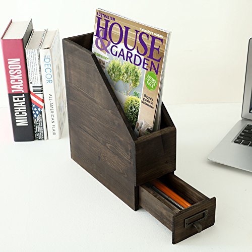 Studio : MyGift Publisher : MyGift Binding : Office Product Product Description Perfect for maintaining rustic decor while organizing documents, files, magazines, or sales literature, this wooden file folder holder in a lightly distressed brown finish complements the lived-in look of vintage decors while keeping materials tidy. Featuring a small drawer for pens, clips, or other small items, this wooden magazine holder is large enough for file folders and most magazines, and can be used individually or in groups to organize a large amount of materials. Maintain the attractive rustic decor of home or office spaces while providing essential organization for periodicals or files with this vintage brown wood document holder. Approximate Dimensions (in inches): 11.6 H × 3.9 W × 10.2 L. 0 |