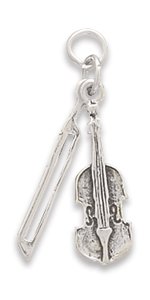 -. Title : 25x8mm with 24x4mm Bow Violin and Bow Charm Silvertone