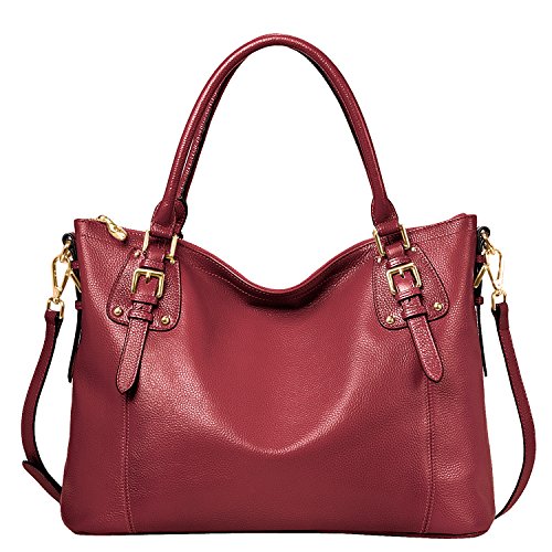 -. Feature : Design: real leather(darker color spraying on edge manually) / tote handbags' shape / golden color hardware / damask lining(silky coffee color) / four metal rivets on bottom (preventing scratching) / top zipper closure / sturdy shoulder bag. / Carry styles: shoulder bag / top handle bag / crossbody bags / handbag / working tote / Dimension:"large size:(L*H*W) 16.5*11.4*6.7in / handle strap drops 7.8in" / "small size:(L*H*W) 13.7*9.8*6.3 inches / handle strap drops 7in height" / pockets: 1*interior zip pocket, 1*interior zip bag, 2*item slots, 1*exterior zip pocket / removable shoulder strap: appr.95~115cm, drop height 50cm(19.6") / Occations: casual daily use / dating / business casual / commuter / laptop bag / 【Jack&Chris】is a trademark registered in the US, UK and etc. Our brand has gained recognition and protection from amazon. We will not allow any forms of infringement. Please pay attention to avoid purchasing counterfeits from other seller.
