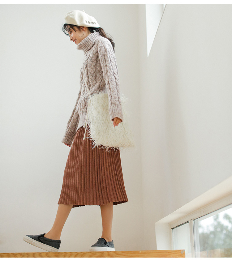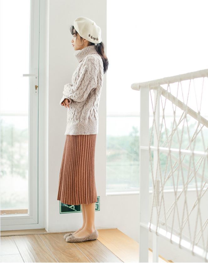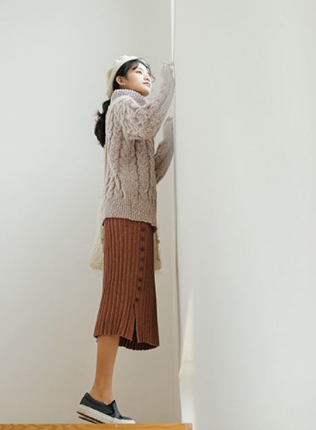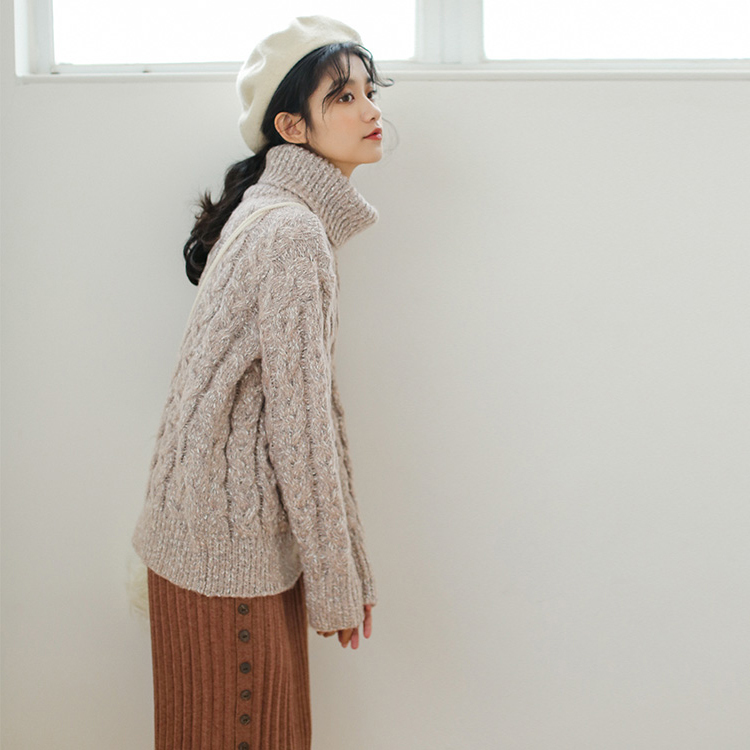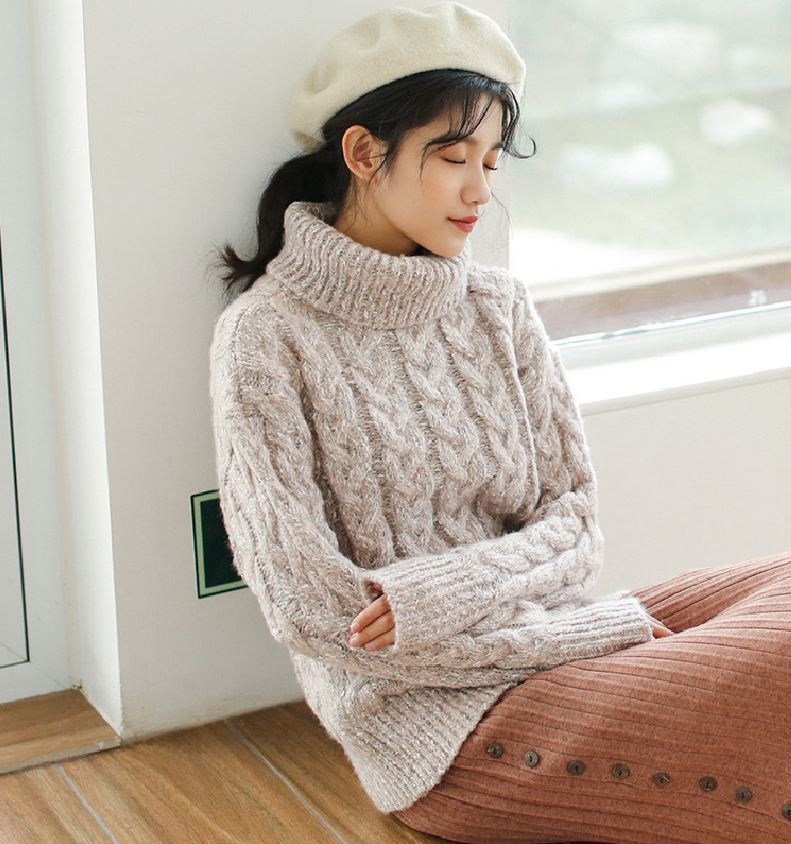 タートルネックの効果で小顔効果も期待できる優秀な1枚です。