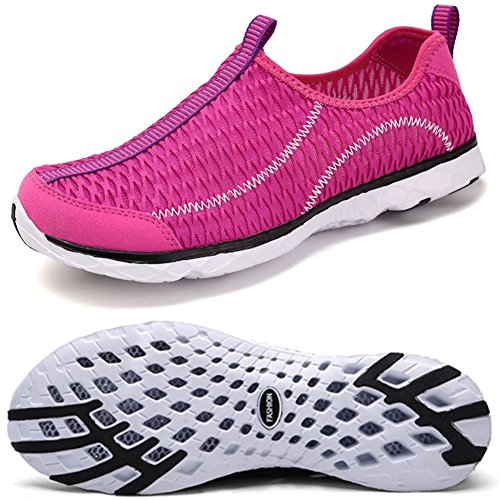 -. Feature : UPGRADE DRAINAGE OUTSOLE: Unique outsole with drainage holes to ensure proper water flow out, and honeycomb structure outsole provides exceptional traction in wet and slippery conditions. / QUICK DRYING: The upper material of the water shoes is made of single layer mesh, open mesh upper provides for superior breathability and quick drying. / BREATHABLE: The aqua shoes with Hollow EVA insole, breathable perspiration, wearing soft and snugly, and creating a cooler and healthier shoes environment. / ULTRA-LIGHTWEIGHT: The water sneaker weight 210-250g per pair is ultra lightweight and very easy to carry and wash. The supper light rubber sole is slip-resistant, and good rebound performance makes you feel more comfortable when walking, reduce walking fatigue. / SUITABLE OCCASIONS: Womens water shoes also can be used as water sandals and water slippers, they are perfect for beach, running, jogging, driving, travelling, walking, shopping, surfing, fishing, sailing, boating, beach walking, bicycle, exercise, water aerobic classes.