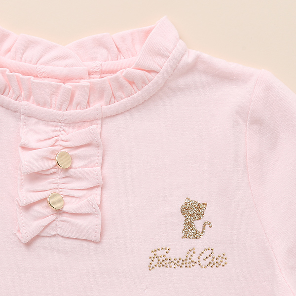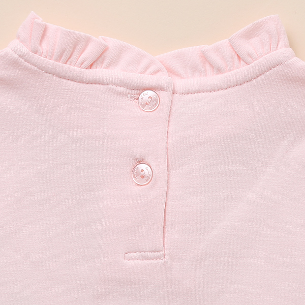 상품설명 입기에 편안한 원단을 사용한 심플한 라인의 연핑크 기본T입니다. 목과 소매부분에 프릴 장식으로 포인트를 주었고, 단추장식과 로고장식으로 갖춰입을 수 있는 기본 아이템으로 완성하였습니다. 원피스 레이어드 용, 치랭스, 데님팬츠와 코디하시기 좋은 데일리 아이템입니다.