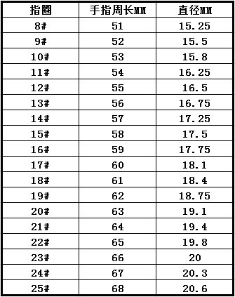 Ring Size / Perimeter (mm)/ Diameter (mm)