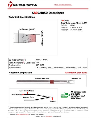Thermaltronics S80CH050 Chisel Extra Large 5.0mm (0.20") interchangeable for Metcal SSC-817A