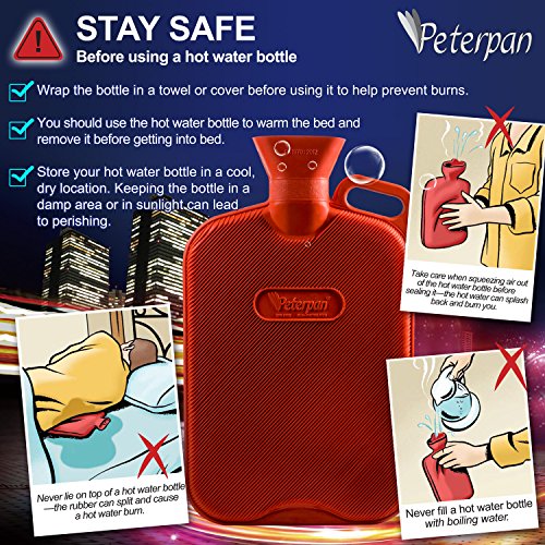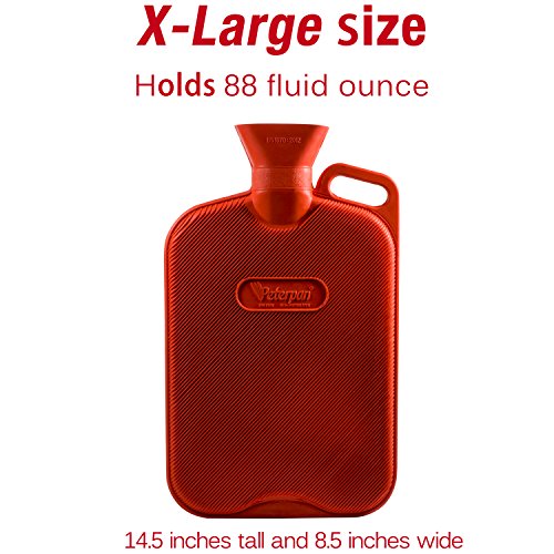 Peter Pan Hot Water Bottles,Extra Large Extra Thick Model, Thicker Higher Quality Rubber for Better Insulation, BPA & Phthalates Free, Holds 88 Fl Oz ,Red