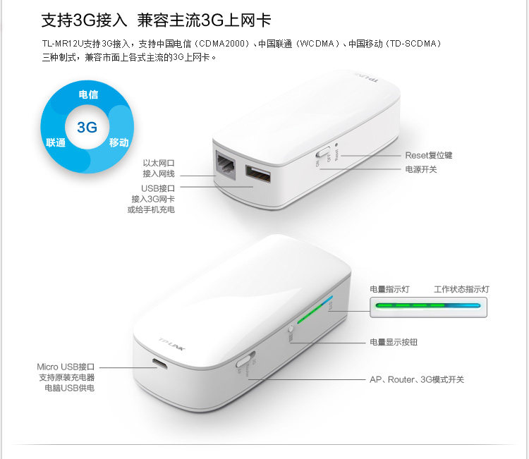 150M wireless portable 3G router TL-MR12U;