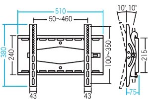 ・取り付け穴の位置はフレキシブルに変更が可能です。(幅方向50~460mm、縦方向100~350mm)