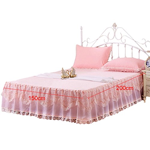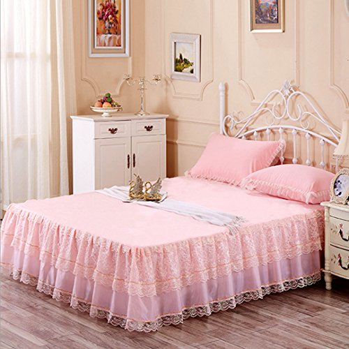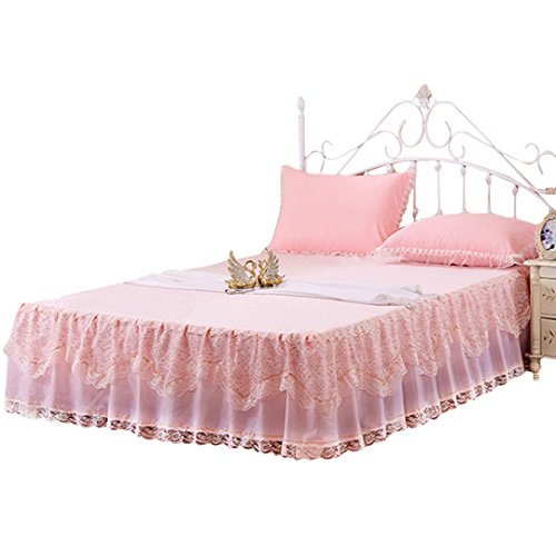 Mily Wrap-Around Floral Lace Bed Skirt Princess Bed Dust Ruffle Machine Washable Pink