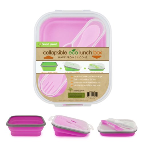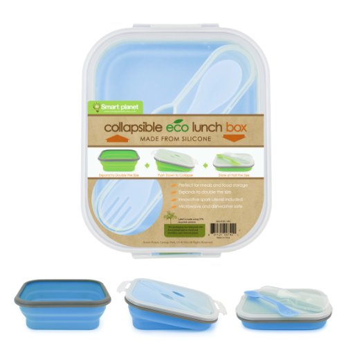 This very clever lunch box is made from BPA-free, food grade silicone and biodegradable Eco Plastic. It is made to hold anything from a sandwich to last night's leftovers and even soup. Now it's easy to "go green" by using this reusable waste-free lunch system. Simply compress it to 1/3 of the size so that it is easy to carry and store when you are done. As an added bonus, this set comes complete with its own innovative two sided spork that snaps into the lid.
