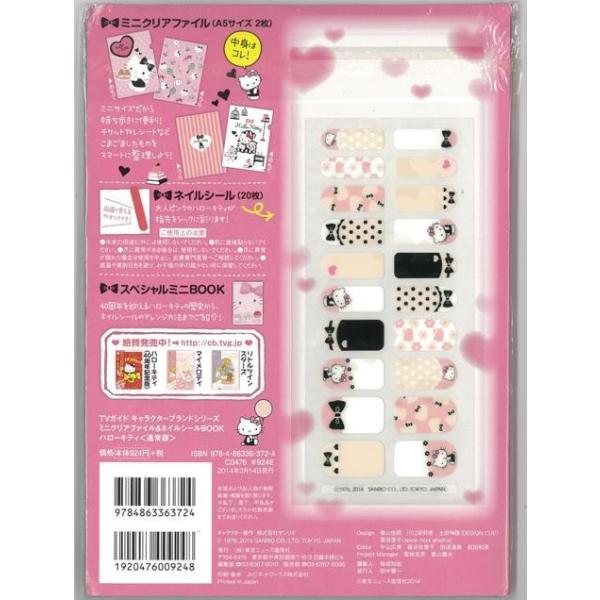 【商品基本情報】 商品名称:ハローキティ 通常版 ミニクリアファイル&ネイルシールBOOK 著者/出版社:TVガイドキャラクターブランドシリーズ/TVガイドキャラクターブランドシリーズ 初版発行日:2014/03/14 サイズ:B5判 ページ数:7 ISBN/JAN:9784863363724/4528189413641
