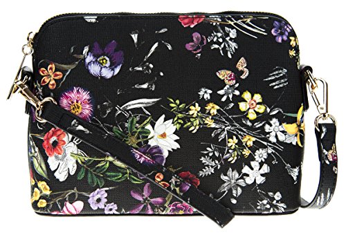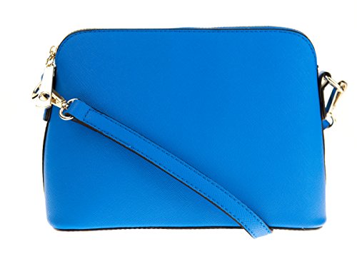 DESIGN: high quality faux saffiano cross-body bag. 1 back zip pocket; zip-top closure at main compartment: 1 inner side zip pocket.