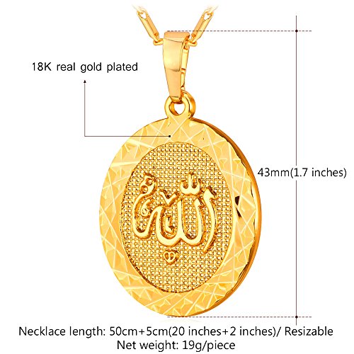 -. Title : U7 18K Gold Plated Allah Pendant With 22 inch Link Chain Necklace