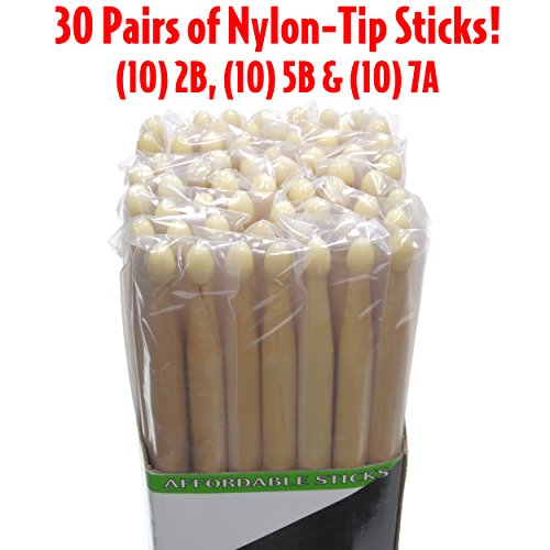 Studio : Kay Guitar Company Publisher : Kay Guitar Company Product Description To play with lightning speed you need sticks that are stronger, straighter and last longer... and we found a quality wood that is perfect for just that! Performance Plus DS30NA drum sticks have been air kiln dried, shaped, sanded and sealed and are ready to make some thunder. Our hard rock maple sticks are offered with a nylon or wood tip in a variety pack of 3 popular sizes (2B, 5B 7A). This product is sold as a box of 30 pairs and is great for hard hitting drummers, point of purchase store sales and party favor giveaways. 0