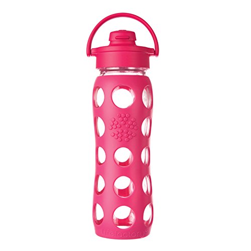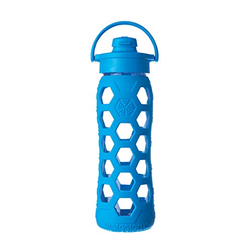 Lifefactory 22-ounce (650 ml) reusable glass water bottles offer a large capacity to quench a big thirst while providing an excellent alternative to disposable plastic bottles. These innovative bottles feature durable glass construction that offers pure taste. The bottle’s glass is surrounded in a patented silicone sleeve that both protects against breakage and provides a comfortable, non-slip surface. The bottle also features a wide-mouth opening making it easy to fill with ice cubes, pieces of fruit, or drink mixes and powders. Meanwhile, the bottle’s Flip Cap is perfect for use on the go. The medical grade, silicone flip top opens up and offers a controlled flow. The flip top seals when plugged but is not leakproof, so please keep this bottle upright! The Flip Cap has a handy pivoting handle that makes it easy to carry the bottle and that stows out of the way while drinking. For easy care, the silicone sleeve and bottle can be washed together. All components of the bottle are dishwasher safe. It is recommended to wash the cap on the top rack. The cap is constructed of BPA/BPS-free polypropylene (PP#5) with no phthalates, PVC, or polycarbonates. The flip top is made of durable BPA/BPS-free silicone. All Lifefactory components are made in the USA or Europe and all products are assembled in the USA.