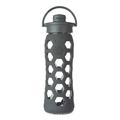 Lifefactory 22-Ounce Glass Bottle with Flip Cap and Silicone Sleeve, Carbon