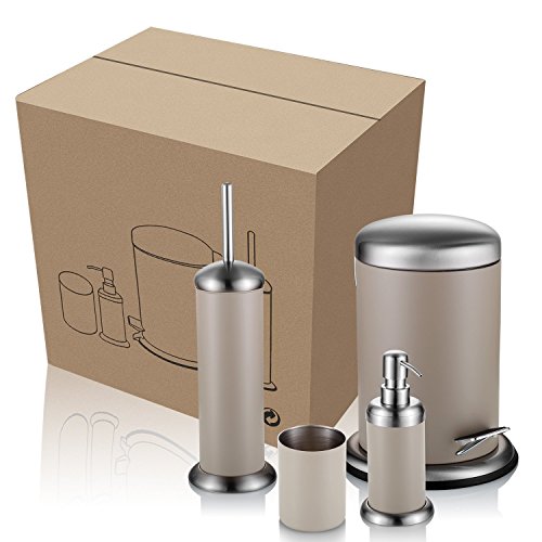 Malmo 4 pcs Bathroom Accessories Set Lotion dispenser, Toilet Brush, Toothbrush cup & Trash Can
