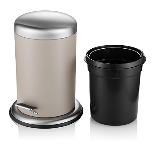 - Trash Can with finger-print proof lid-Capacity 5L/1.3Gallon size 6.7*8.4*11.4 inch, plastic base prevent scratch on your delicate floor, the hinged lid helps hidden trash from public view present a neat and clean appearance for your beloved home