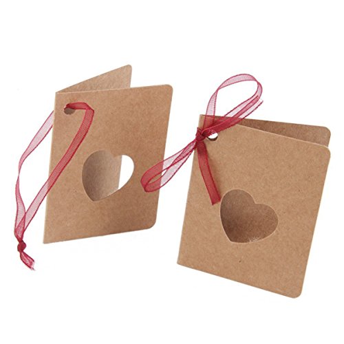 FENICAL Hollow Love Heart Card Tag Kraft Paper Hang Tag with Red Rope for Wedding Party Decoration 50pcs
