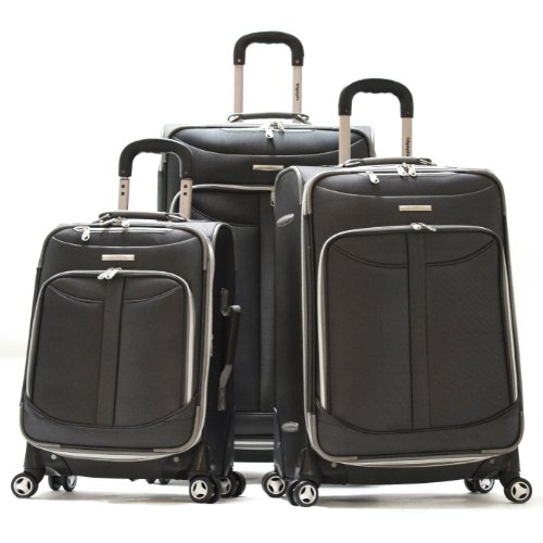 Olympia Luggage Tuscany 3 Piece Spinner Expandable Luggage Set,Black,One Size
