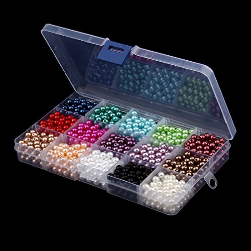 - Quantity: approx 1500 pcs (total 15 colors,100 pcs per color).Beads arrive in a fantastic plastic storage case that will be used over and over, long after the faux pearls have been used up