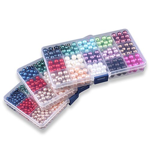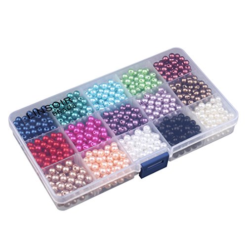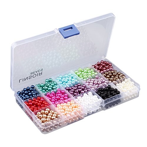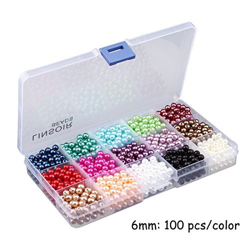 Linsoir Beads 1500 Pcs Tiny Satin Luster Imitation Pearls Beads for DIY Jewelry Making Value Pack 15 Color Assorted (6mm)