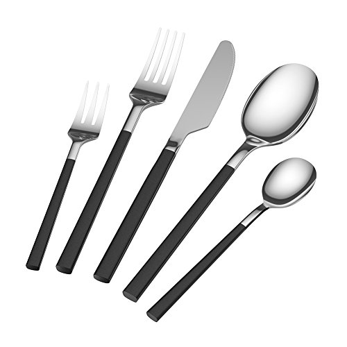 -. Title : Homgeek カトラリー 5pcセット ヘビーデューティフラットウェアセット ブラックハンドル ステンレススチール製 収納ケース付き
