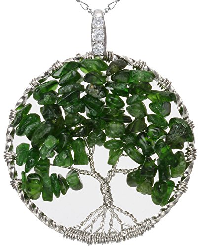 -. Title : Tourmaline Tree of Life Green Gemstone Jewelry Best Friend Necklace Silver Pendant 2pc Chain Deluxe Gift