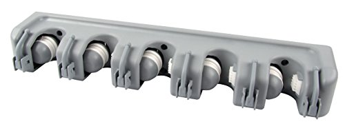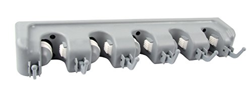 Holds Very Well. Simply by lifting the handle, the rolling balls automatically adjust to each handle's thickness and grip it securely. So there is no worry that the tools will drop to the floor. Hooks can be folded up. It can also hold heavy items without sliding down. Upon hanging wet mops it can dry or air out so that you won't have that "musty" odor.