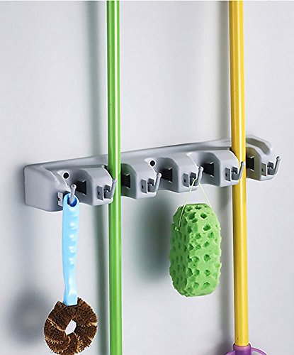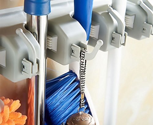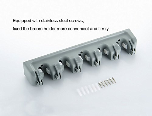 Mop Broom Holders and Garden Tool Organizer with 5 Non-slip with 6 Hooks - Storage Solutions for Broom Holders - Perfect Broom Hanger for Kitchen Garden and Garage by Winthome