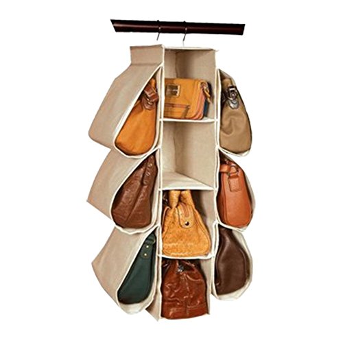 Homewares Nonwoven Purse Handbag Organizer 10 Pockets Hanging Closet Storage Bag(Beige)