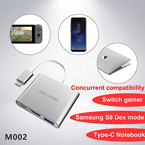 -. Feature : Convert Samsung S8 DeX,Switch and Type-C notebook into a desktop computer / Support HDMI Projection / Perfect HD 1080P video display / Compact and flexible,easy to carry with. / Ports:1*HDMI video interface;1*USB 3.1 transmission interface;1*Type-C output interface