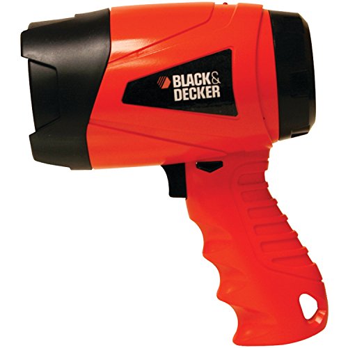 Studio : Black Decker Publisher : Black Decker Binding : Automotive Product Description The Black Decker 3 Watt cordless, alkaline spotlight. The ultra-bright 3 Watt LED reaches 195 lumens and lasts for up to 13 hours. This Black Decker spotlight features a heavy duty rubber bezel, 3 position trigger lock and it runs on 4 AA alkaline batteries. The spotlight is small, lightweight, and easy-to-use making it ideal for traveling, camping and at home. 4 alkaline batteries are included with this spotlight. 0