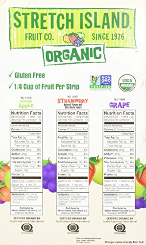 -. Feature : 1/4 cup of fruit per strip / 24 pouches of each flavor - Cinnamon Apple, Strawberry, Grape / Organic, Non-GMO & gluten free / All-natural, nothing artificial / No added sugar-all sugar comes naturally from fruit