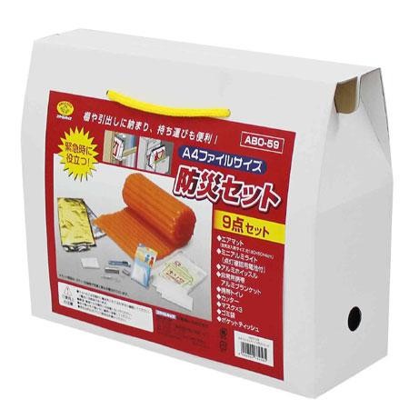 オフィスでも場所を取らず、棚に入るA4サイズのコンパクトな防災セットを提案。ライトは停電時などに明かりを確保できます。アルミホイッスルは体力をあまり消費せずに助けを呼べます。非常用携帯アルミブランケット、エアマット等を使って簡易寝床になります。マスクは粉塵対策に活躍します。カッターでダンボール等の裁断できます。断水対策にトイレ2~4回分を確保できます。 |