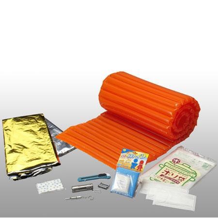 | セット内容 | エアマット1800(ストロー付) ミニアルミライト(単4形×3本(付属)) アルミホイッスル 非常用携帯アルミブランケット 携帯トイレ マスク×3 ポケットティッシュ カッター ゴミ袋 |
