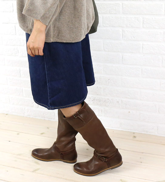caqu(サキュウ) コットン デニム 膝丈 Aライン スカート “FS 2/3 Aラインスカート”・25004-12