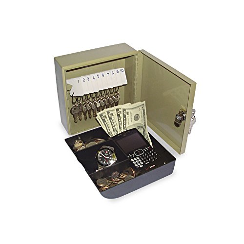 -. Feature : Sold as 1 EA. Wall mount or desk top. / Removable four-compartment tray for cash and valuables fits in desk or drawer. / Includes hardware, ten key tags, slots and locking keys.