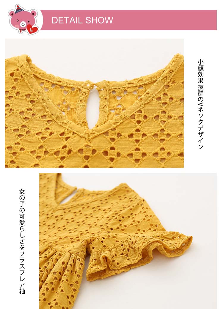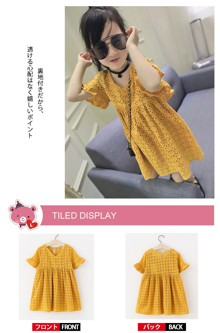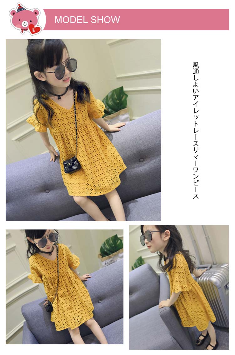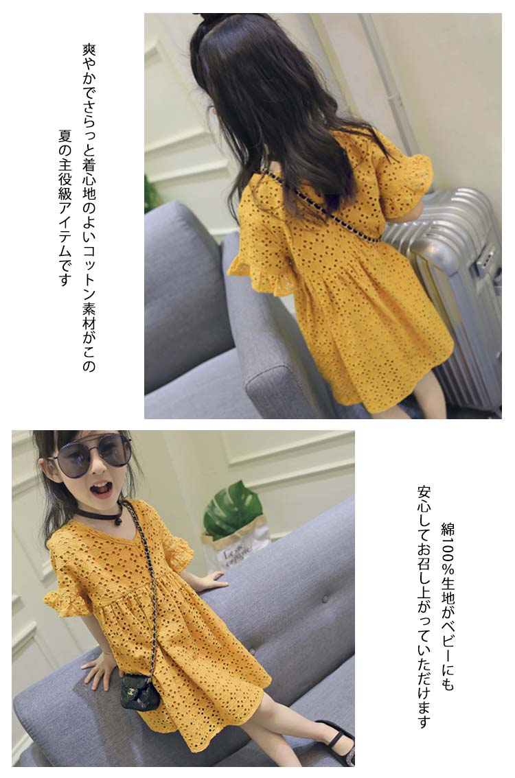 | 風通しよいアイレットレースサマーワンピース爽やかでさらっと着心地のよいコットン素材がこの夏の主役級アイテムです綿100%生地がベビーにも安心してお召し上がっていただけます裏地付きだから、透ける心配はなく嬉しいポイント | |