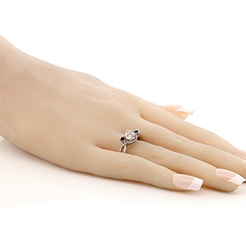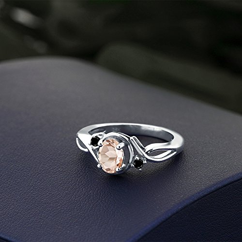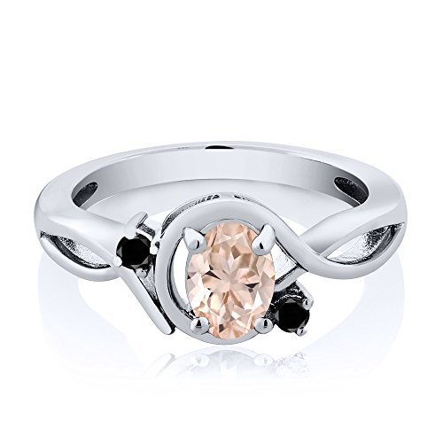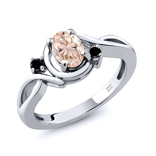 -. Title : 0.72 Ct Oval Peach Morganite Black Diamond 925 Sterling Silver Ring