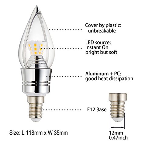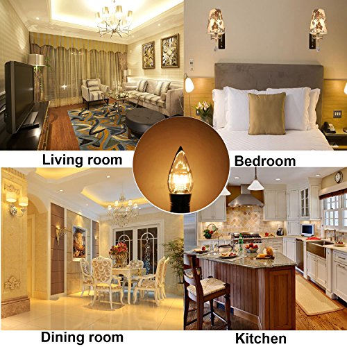 - 【Excellent performance】E12 Candelabra Led Light Bulbs,7W,warm white 2700K,650 Lumens, Instant on,Not dimmable,Standard candelabra shape with small screw base (e12) makes it easy to install, Pack of 4.