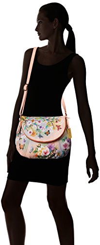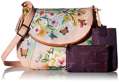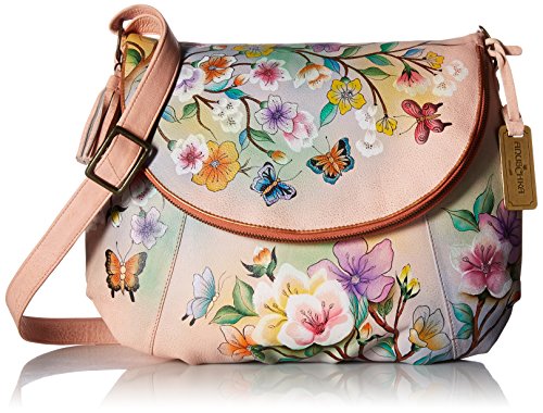 Anuschka Handpainted Leather Large Flap-Over Convertible,Japanese Garden