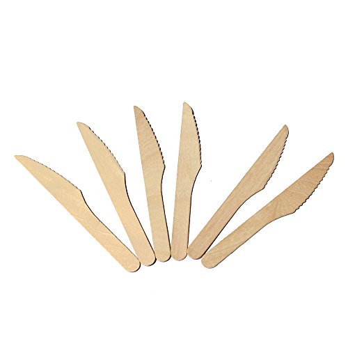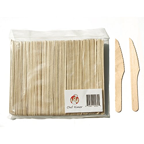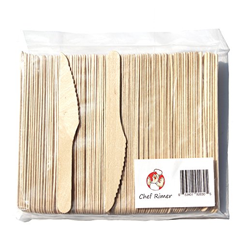 Chef Rimer Disposable Wooden Knives 6" Length (Pack of 100pc) Eco Friendly Green Camping Gear Table Wood Equipment Dinnerware Bulk Kitchen Kit For Men Women Chef Kids Dinner Party Family Supplies Set