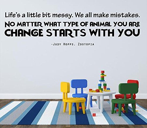 Zootopia Decal Quote by Judy Hopps - "Life's a little messy...CHANGE START WITH YOU" - Movie Wall Decoration - 20"x7"