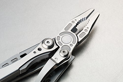 FEATURING 7 TOOLS: Needlenose Pliers, Regular Pliers, Hard-wire Cutters, Wire Cutters, 420HC Combo Knife, Carabiner/Bottle Opener, Large Bit Driver.