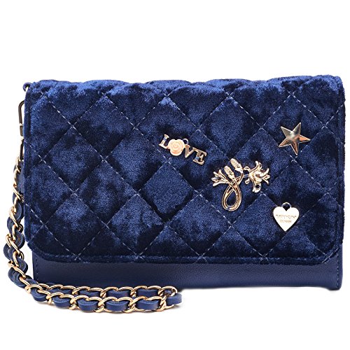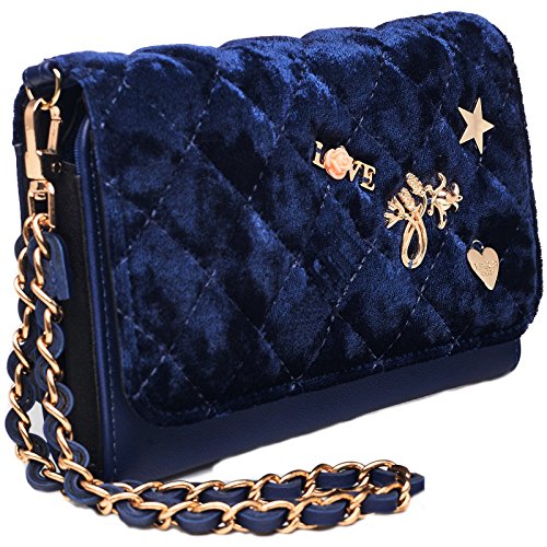 - Occasion: Luxurious branded everyday stable designer handbag, purse, perfect personal party size for all your needs. Beautiful ultra soft rich quilted velvet with cute metal charms. Your go to wristlet to complete your outfit. Great for commuters, power cocktail party, clubbing, school, college campus, work, concerts, airport, travel, ball games, football stadiums, formals, weddings, church, derby, dress it up, a night out with girls or a hot date, all outdoor activities. Great for ladies and t