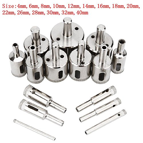 Aiskaer 15 pcs Diamond Hole Saw Drill Bit Set - Diamond Hole SAW Drill BIT FOR Ceramic, Porcelain Tiles, Glass, Marble, Granite,Diameter 4mm to 40mm (15PCS)