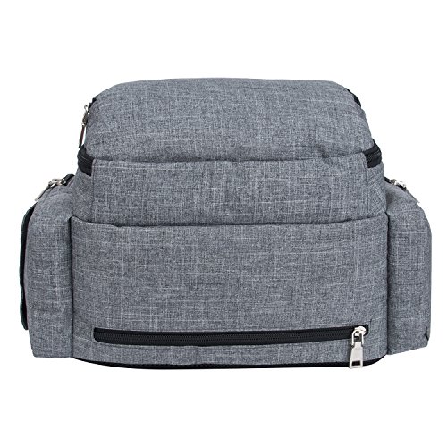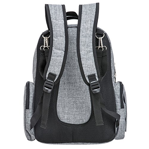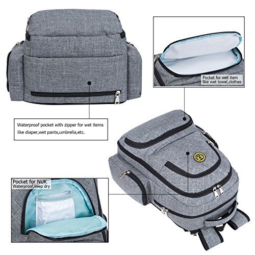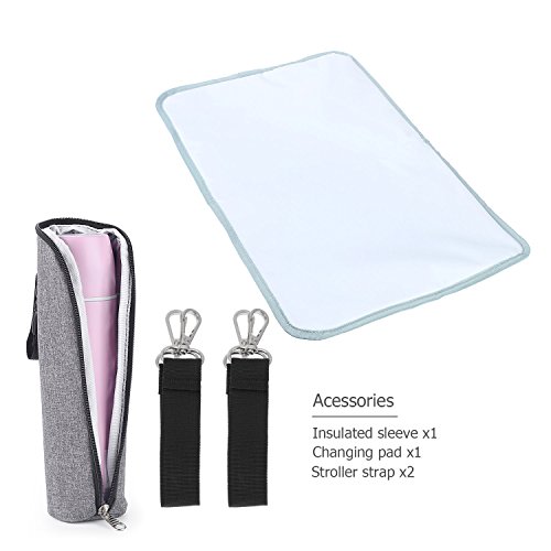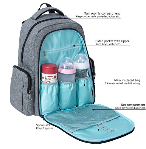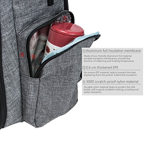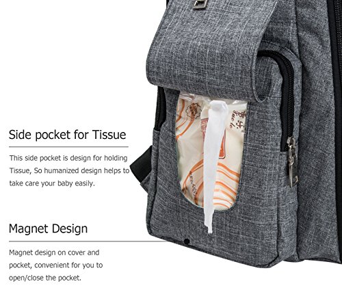 The outside left side pocket with Magnetic buckle can provide quick access to wipes, right side pocket with insulated material can keep the temperature of baby bottle .