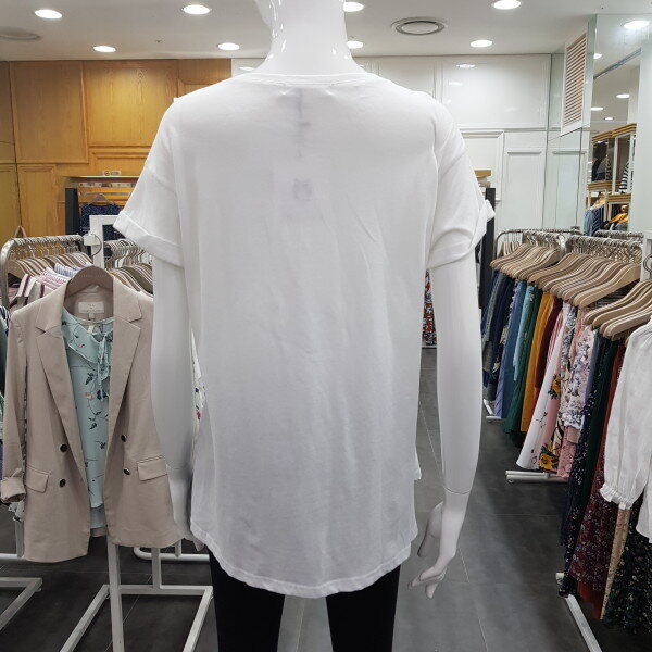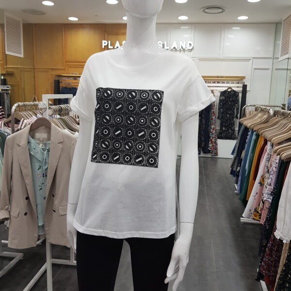 앞 프린트 티셔츠예요~깔끔하면서 여성스러운 스타일입니다 ~어디에나 매치해서 입으셔도 이뻐요 ~